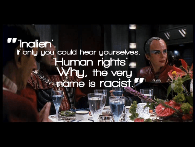 On the other hand … when I realised that L’Rell and Voq aren’t soldiers, but radicalised extremists, that made Ash-is-Voq much less hilarious and terrimazing, and a lot more racist. It’s one thing to say the Klingons are inspired by the alt-right, but it’s obviously quite another to have your British-Pakistani actor playing a bloke who is secretly a terrorist. Even if it’s a secret from him.